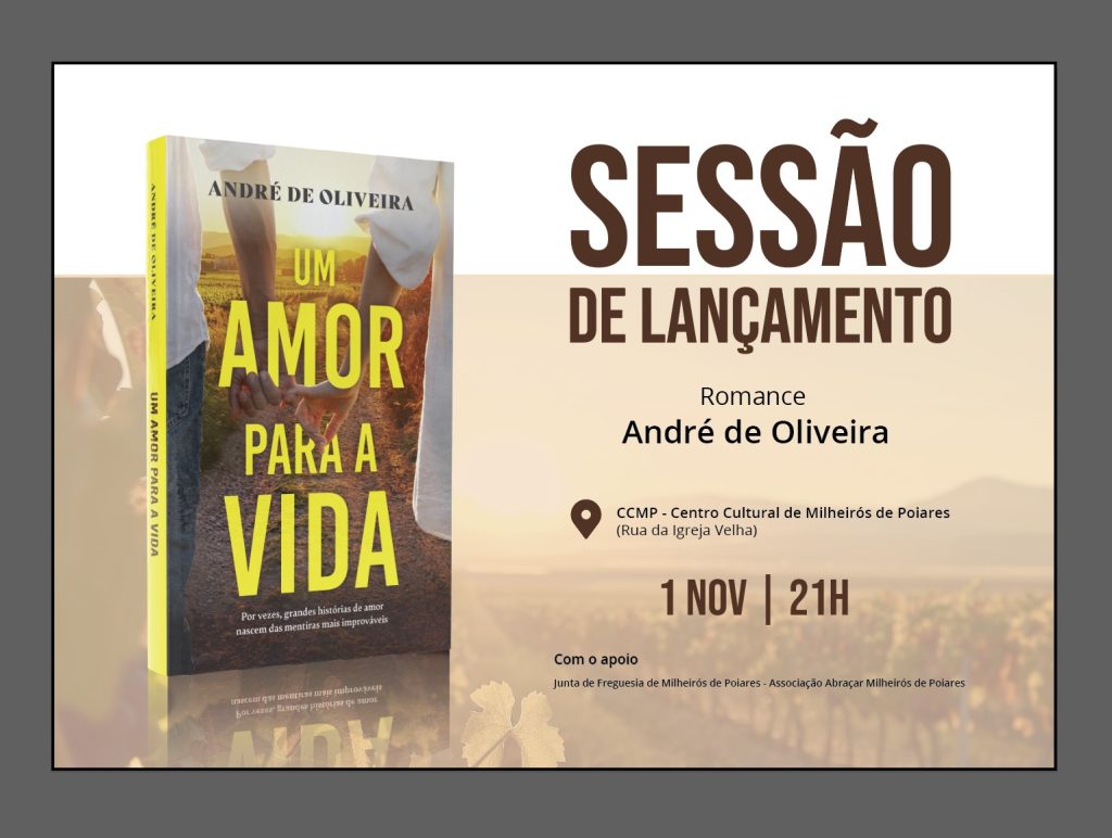 O escritor André de Oliveira, natural de Milheirós de Poiares, prepara-se para apresentar o seu novo romance. ‘Um Amor para a Vida’ é o nome da mais recente obra literária, que será lançada no próximo dia 1 de novembro, às 21h, no Centro Cultural de Milheirós de Poiares.