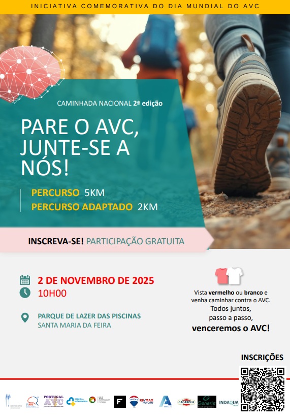 Com o mote “Pare o AVC, junte-se a nós”, o serviço de neurologia da Unidade Local de Saúde de Entre Douro e Vouga (ULSEDV) promove, no próximo dia 2 de novembro, uma caminhada solidária destinada a sensibilizar a comunidade para a prevenção do acidente vascular cerebral (AVC), uma das principais causas de morte e incapacidade em Portugal.