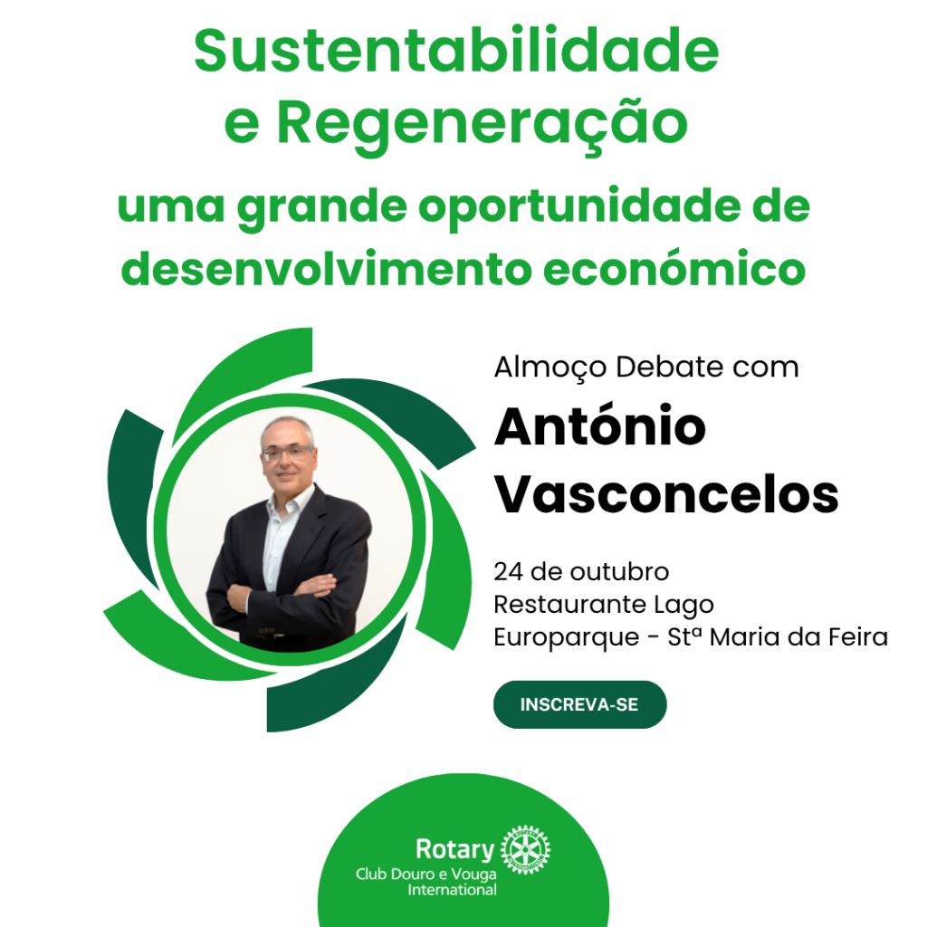 Esta sexta-feira, 24 de outubro, o Restaurante Lago, em Santa Maria da Feira, será palco de um almoço-debate dedicado à Sustentabilidade e Regeneração, promovido pelo Rotary Club Douro e Vouga International. O encontro pretende ser um momento de reflexão e diálogo sobre os desafios e oportunidades que se colocam às organizações e comunidades perante as transformações globais em curso.