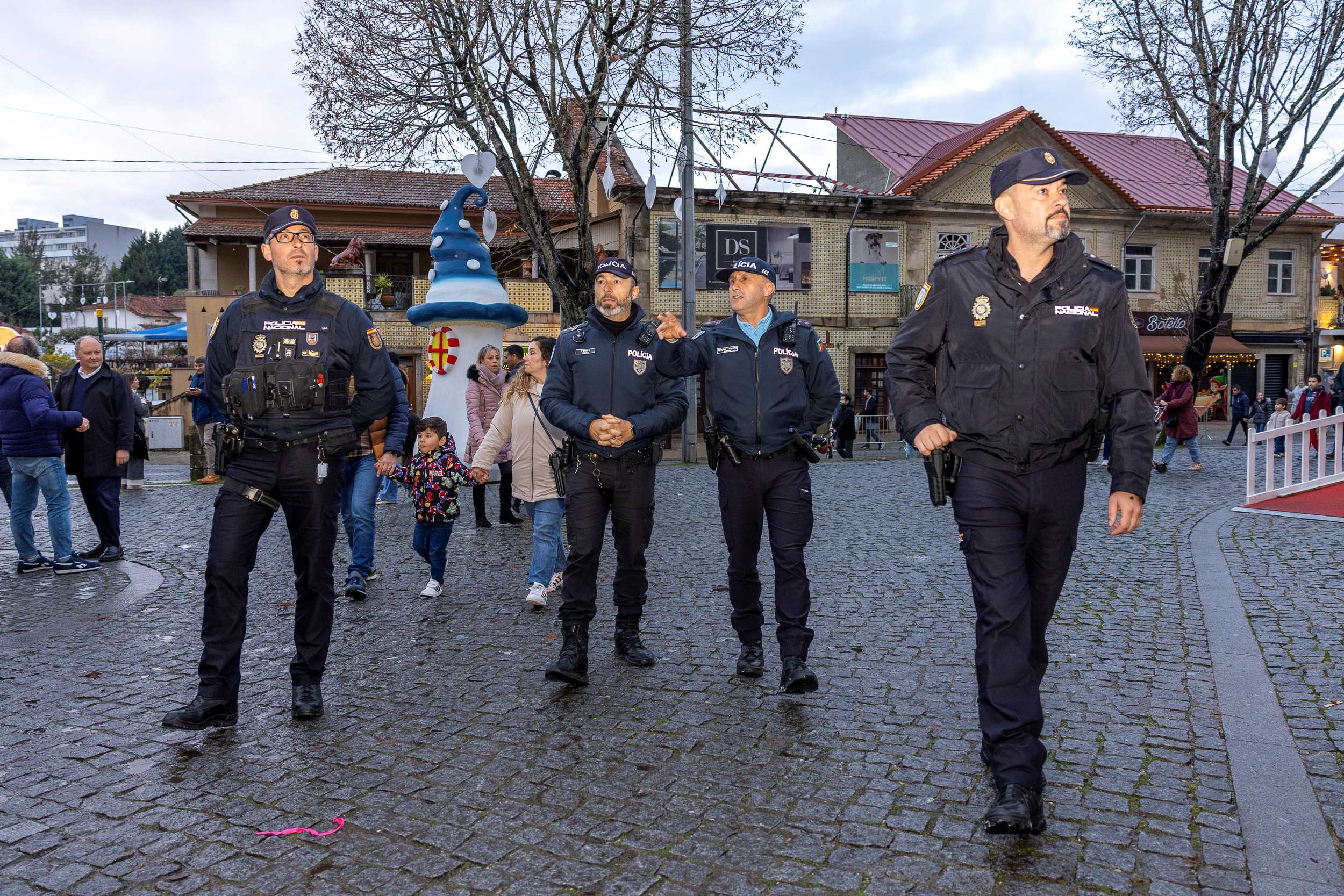 Dois agentes da Polícia Nacional de Espanha, destacados da Comisaría de Vigo, estiveram nos últimos dias em Santa Maria da Feira a apoiar a operação de segurança de Perlim – Parque Temático de Natal. Fardados e acompanhados por agentes da PSP local, marcaram presença nas zonas de maior afluência, prestando informações úteis aos visitantes e sensibilizando para a circulação em segurança.