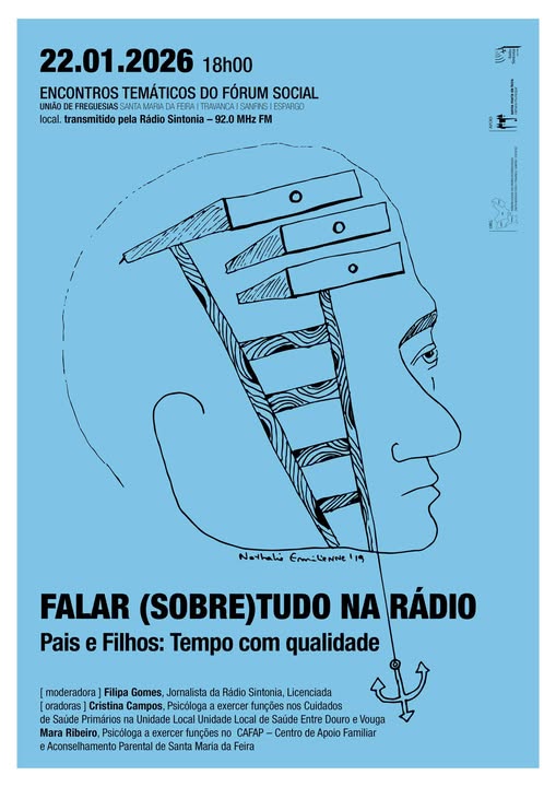 A Rádio Sintonia transmite esta quinta-feira, 22 de janeiro, a partir das 18h00, o debate “Pais e Filhos: Tempo com Qualidade”, uma iniciativa integrada no projeto de Promoção da Literacia em Saúde Mental – “Falar (sobre)tudo na Rádio”, dinamizado pelo Fórum Social da União de Freguesias de Santa Maria da Feira, Travanca, Sanfins e Espargo.