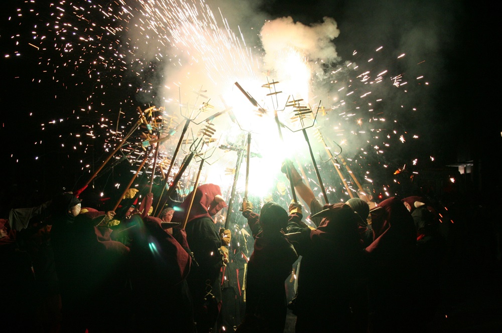 A tradição também marca presença com o “Correfoc”, que leva fogo, ritmo e intensidade às ruas da cidade. Resultado de uma colaboração entre artistas catalães e portugueses, este ritual coletivo convida o público a participar ativamente, num percurso onde não há fronteiras claras entre quem observa e quem faz parte da ação.
