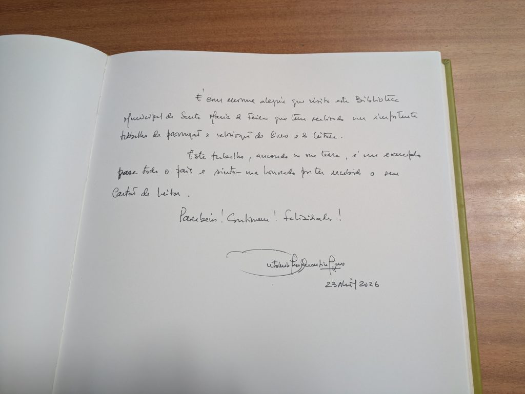 António José Seguro deixou uma mensagem no livro de visitas da Biblioteca Municipal de Santa Maria da Feira.